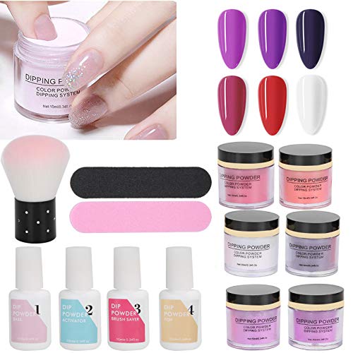 Set di polvere per immersione per unghie, inclusi 6 colori di polvere per nail art, oltre a top coat non lavabile, primer, essiccante, liquido per la pulizia dei pennelli, accessori per spazzole per la polvere, ecc., Set completo, per una migliore esperienza di nail art.