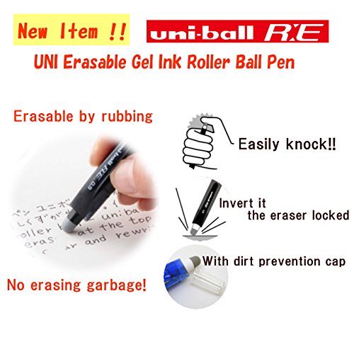 Uni-ball R:E, penna a sfera con inchiostro gel cancellabile, punta da 0,5 mm, inchiostro blu cobalto, confezione da 3 pezzi (URN18005.33)