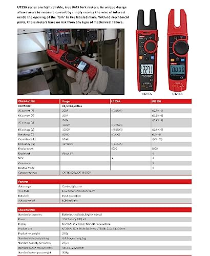 UNI-T Uni-trend Multimeter clamp meter UT256A UT256B Ture RMS Digital Clamp Fork Meter Multimeter AC/DC Voltage Current Resistance Capacitance NCV Test Backlight(UT256B)