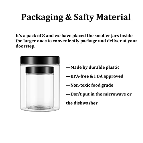 【Set serbatoio di stoccaggio】Il nostro set di barattoli da cucina contiene 8 contenitori per la cucina. La dimensione dei singoli barattoli di conservazione è 4 * 600ML (8.4 * 13cm ) + 4 * 300ML (7.1 * 10.5 cm) e la capacità è 3,6 L. 8 etichette bonus riutilizzabili e una penna.