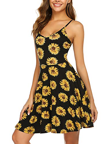 UNibelle Donna Vestito Corta Estate Gonna Stampa Floreale Tracolla Regolabile Girasole L