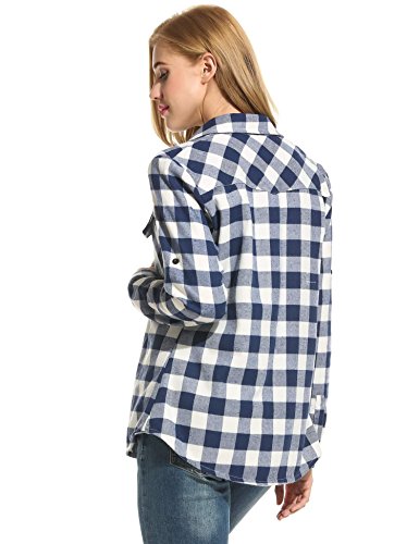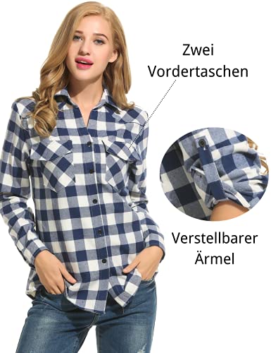 UNibelle Tunica da Donna Camicetta a Quadretti Scollo a V Camicia di Flanella 3/4 Braccia Camicie Classiche Top Estate Tradizionale Camicetta Blu Scuro S