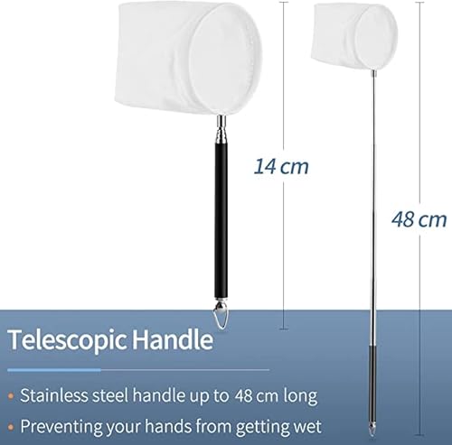 【Manico Telescopico】 Il manico in acciaio inossidabile è di 14 cm quando è chiuso e lungo 48 cm quando è estratto, per evitare che le mani si bagnino.