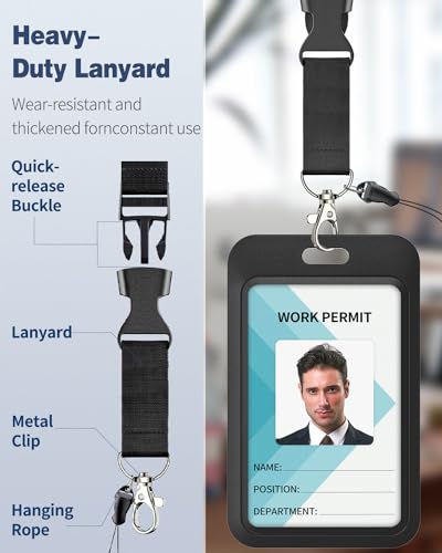 Uniclife Sliding Badge Holder Hard Black Vertical Plastic Card Case Protector con cinturino per cordino Fibbia in metallo e clip per Office School ID Credito Proximity Key Card Licenza e Pass, 3 pezzi