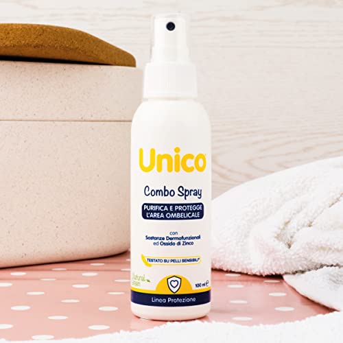 ✅ Unico Combo è uno spray a base di Vitamina E, Betaglucano, Ossido di Zinco, Tea Tree Oil, Bisabololo, Centella Asiatica, Clorexidina, Arginina, Urea, ad azione lenitiva, purificante e protettiva della cute. Ideale in caso di arrossamenti ed irritazioni, anche in caso di dermatiti da pannolino o screpolature da freddo.