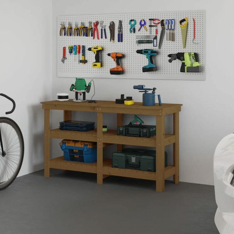Questa panca da lavoro in legno rappresenta una pratica aggiunta al vostro ambiente. Legno massello di pino: Il legno massello di pino è un bellissimo materiale naturale. Il legno di pino ha le venature dritte e i nodi conferiscono al materiale il suo caratteristico aspetto rustico. Ampio spazio portaoggetti: Questo banco da lavoro, dotato di ripiani, offre ampio spazio di conservazione per riporre i vostri oggetti in modo organizzato e a portata di mano. Telaio robusto: Il telaio in legno garantisce robustezza e stabilità. Attenzione: Per evitare il ribaltamento questo prodotto deve essere utilizzato con il dispositivo di fissaggio a parete fornito. Nota: Ciascun prodotto viene fornito con un manuale di assemblaggio nella confezione per un facile montaggio. Colore: Miele Materiale: Legno massello di pino Dimensioni: 142,5 x 50 x 80 cm (L x P x A) Legal Documents: Maggiori dettagli su come evitare il rovesciamento dei mobili sono disponibili qui