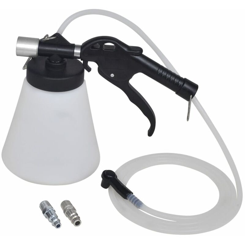 Lo spurgo è facilitato dall'utilizzo di questa pompa a vuoto da 1L portatile! Usando l'aria d'aria standard da officina (6-12 bar), il kit funziona in modo efficiente per lavare e riempire l'impianto frenante sulla maggior parte dei veicoli. Lo spurgo estrae il fluido dalla boccola di spurgo. Anche il tubo per l'estrazione del fluido è incluso. La consegna include uno spurgo del freno e della frizione con tubo flessibile e 2 connettori metallici. Capacità: 34 once, ca. 1 litro Consumo d'aria: 180 l/min Connettore metallico: 1/4 "(0,64 cm) Alimentazione aria: da 90 a 120 PSI Presa d'aria: 1/4 '' - 18 NPT