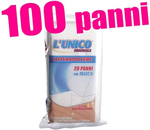 L'UNICO ORIGINALE 100 Pezzi Panni ELETTROSTATICI per SPOLVERARE Pulizia CATTURAPOLVERE Panno ELETTROSTATICO Cattura Polvere Antipolvere Pulire 18X37,5cm 5 pacchi da 20pz
