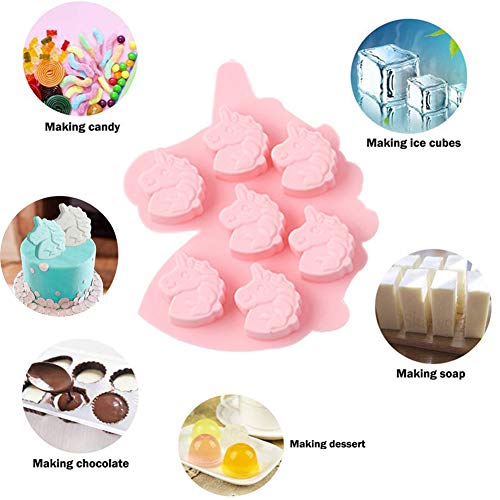 La confezione include 1 stampo rosa a forma di testa di unicorno con 7 cavità, in modo da realizzare sette piccoli stampi alla volta.