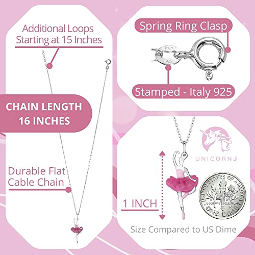 Unicornj Bambini Pendente in argento sterling 925 per ballerina, ballerina, ballerina, collana con ciondolo, tutu in tulle rosa scuro e smalto rosa chiaro 16 "Italia