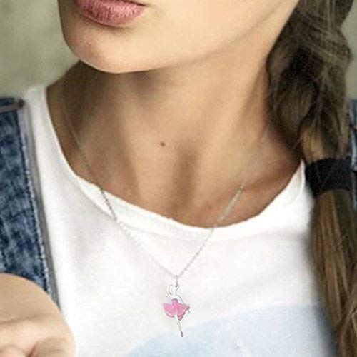 Unicornj Collana pendenti per pattinaggio di figura in argento sterling 925 per bambini con gonna in tulle rosa scuro e smalto rosa chiaro 16 "Italia