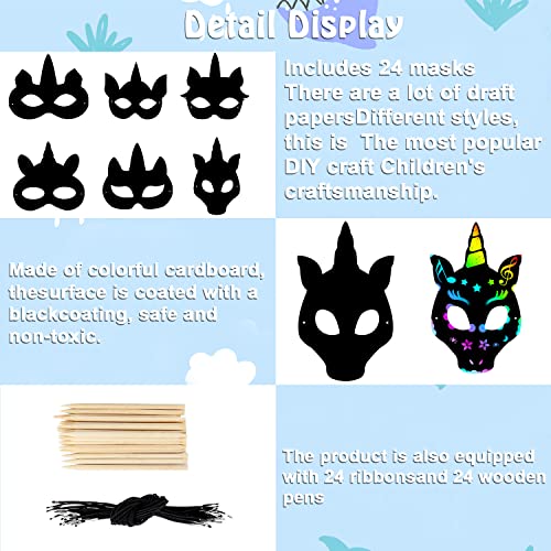 [Bambini Scratch Set]: il set contiene 24 maschere di animali in carta da bozza, 24 elastici e 24 penne a bastoncino di legno. Grandi quantità e stili offrono ai bambini più scelte! Una volta completata la produzione, può essere utilizzata come un buon supporto per foto e decorazione di maschere!