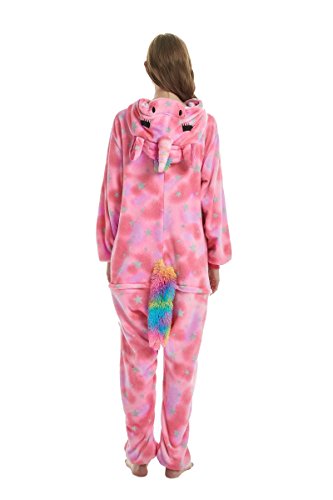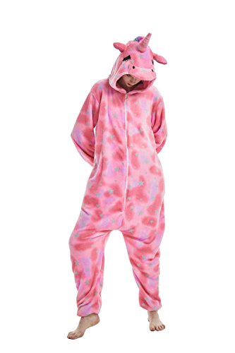 Unicorno Pigiama Unisex Adulto Cosplay Halloween Costume Animale Pigiama Inverno Tuta Animali Unisex (XL (Altezza: 69.7"-72.8" / 147cm-157cm), Rosa)
