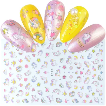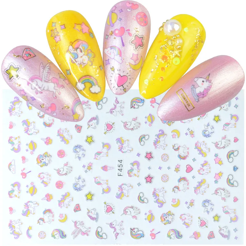 Unicorns Rainbow Heart Star Moon Mix Patterns Self Adhesive Sticker for Nails 3D Embossed Decal Manicure Decorations