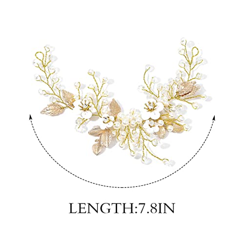 Unicra Accessori per capelli da sposa con fiore di vite per capelli da sposa e da sposa con perle (oro)