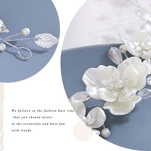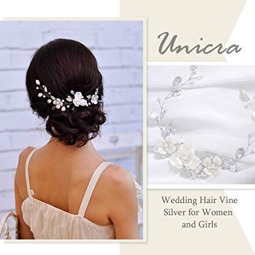 Unicra - Accessorio per capelli da sposa con fiore in argento, per donne e ragazze