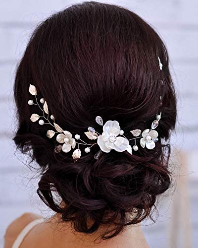 Accessori per capelli da sposa: lega, perle, strass e fiori artificiali. 100% fatti a mano per decorare eleganti;