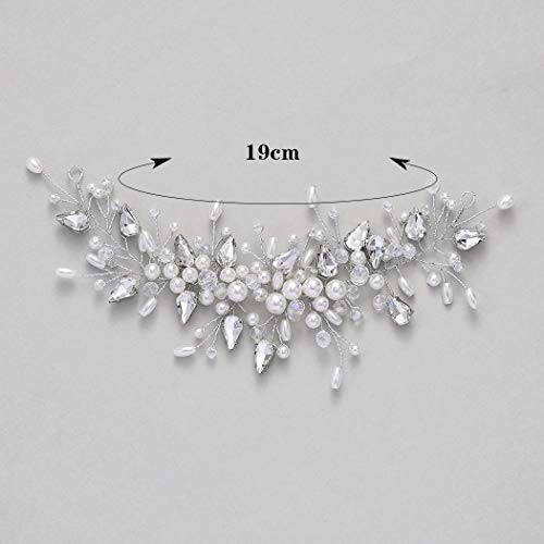 Unicra, Fascia per capelli per donne e ragazze, con cristalli e perle, color argento, ideale per matrimoni
