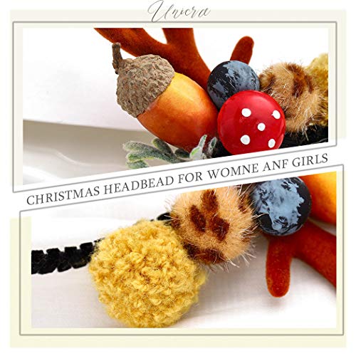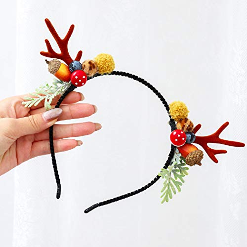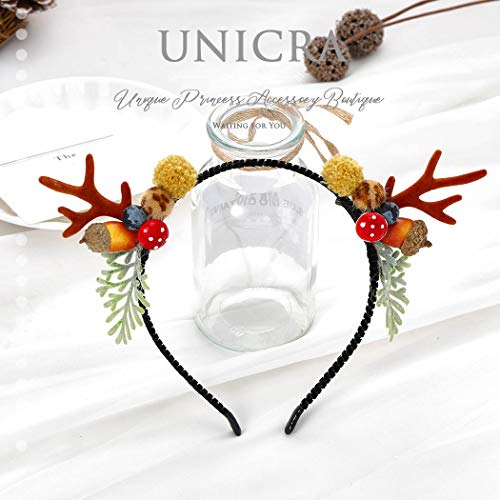 Unicra Fascia natalizia con corna di cervo e fiori, cerchietto per capelli con corna di cervo, accessorio per Halloween, per donne e ragazze (19)
