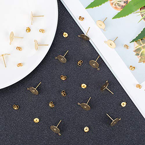UNICRAFTALE 100pcs Orecchino Piatto Rotondo Vuoto in Acciaio Inossidabile Dorato 0.8mm Orecchino A Perno con Perno 10mm Tampone Piatto con Orecchino Ad Anello Componenti per Creazione di Risultati