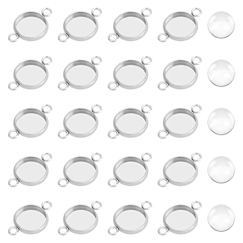 UNICRAFTALE 100set Cabochon In Acciaio Inossidabile Connettori Impostazioni con Cabochon in Vetro Trasparente Piatti Tondi Piatti Pendenti Vassoi 10mm Doppio Anello Orecchini per Creazione di Gioielli