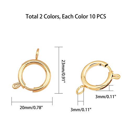 UNICRAFTALE 10pcs 2 colori Anello A Mollausure Acciaio Inox Anello A Molla Fermagli Superficie Liscia Gioielliusura per Gioielli, Colore Oro e Acciaio Inossidabile Largo 20 mm