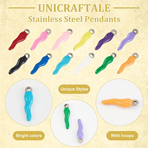 UNICRAFTALE 12Pcs 12 Colori Ciondoli Smaltati Anallergici Ciondoli Corno Italiano 1mm Foro Piccolo Corno In Acciaio Inossidabile Ciondoli per La Creazione di Gioielli Fai Da Te