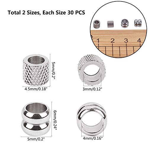 UNICRAFTALE 60pcs 5mm / 6mm Perline Distanziali per Colonna 304 Perline Allentate in Acciaio Inossidabile Perline Distanziali con Foro Grande Perline Trovare per Creazione di Gioielli, Hole 3~4 mm