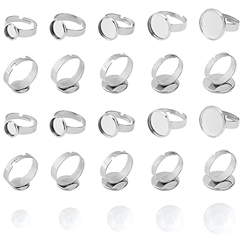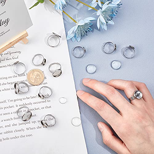 UNICRAFTALE Base per Anello di Regolazione da 8/10/12/14/16 mm 20 Set Anelli per Castone in Acciaio Inossidabile con Cabochon di Vetro Semicircolari Anelli per Barrette Componenti per Anelli