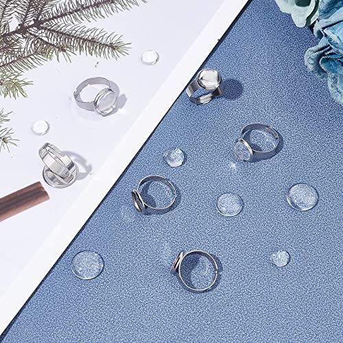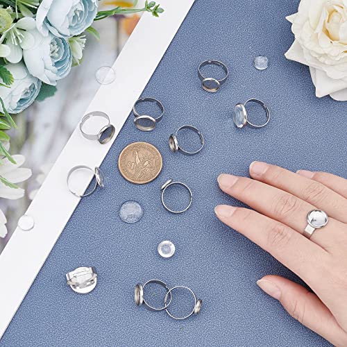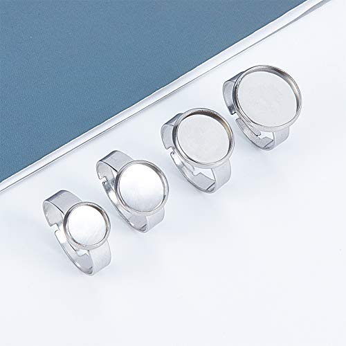 UNICRAFTALE Base Tonda in Acciaio Inossidabile 4 Misura con Cabochon (8/10/12/14mm), 24 Set Kit di Anelli Regolabili Fai-da-Te, Anello Cabochon in Bianco con Castone per Le Forniture di Gioielli