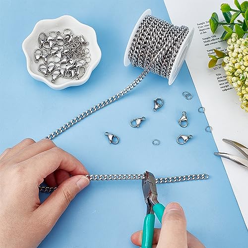 UNICRAFTALE Catene A Cordolo In Acciaio Inossidabile Da 5 m Catene A Maglie Cubane Collana A Maglie Intrecciate Bobina di Catena con Anelli di Salto Aperti Fermagli per Aragosta Kit per La Creazione