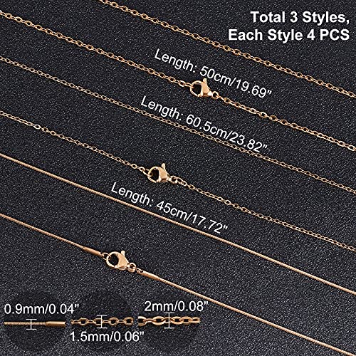 UNICRAFTALE Kit di catene dorate in acciaio inossidabile da 12pz Collegamento in metallo Include 8 catene di cavo da 50/60,5cm 4 catene a serpente da 45cm con fermagli Filo Acciaio per Bigiotteria