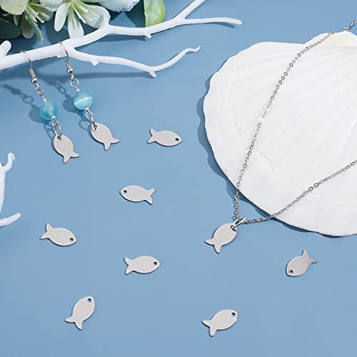 UNICRAFTALE 200 pz 304 Ciondoli In Acciaio Inossidabile Modello di Pesce Charms Toni Argento Ciondolo Piccolo Foro per Collane Creazione di Gioielli 13.5x7x0.9mm, Hole 1.4 mm