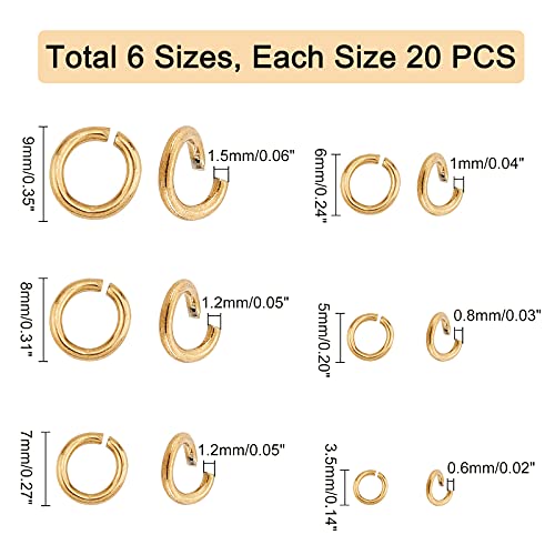 UNICRAFTALE Circa 120 Anello di Metallo da 2.3/3.4/4/4.6/5.6/6 mm, Anelli di Salto Aperti in Acciaio Inossidabile e Anelli Connessione per Gioielli Dorati per Braccialetti Mestiere di Fabbricazione