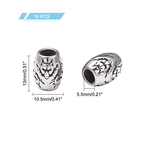 UNICRAFTALE Circa 10 pz Barile con Lupo Perline Allentate in Acciaio Inox Perline Europee Argento Antico 5.5mm Perline Foro Largo Spacer Bead Find for Jewelry Making 10.5mm