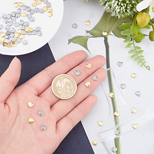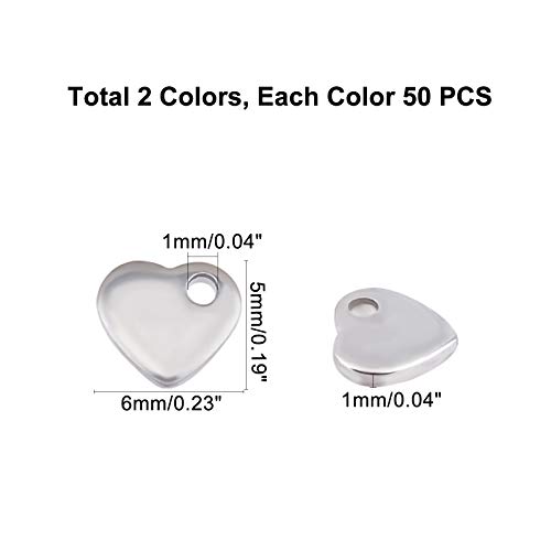 UNICRAFTALE Circa 100 pz 2 colori Ciondolo Cuore Piatto Piccolo Ciondolo Amore Ciondolo In Acciaio Inox Ciondolo Ipoallergenico 1 mm Piccolo Foro per Creazione di Gioielli, 6 mm di Larghezza