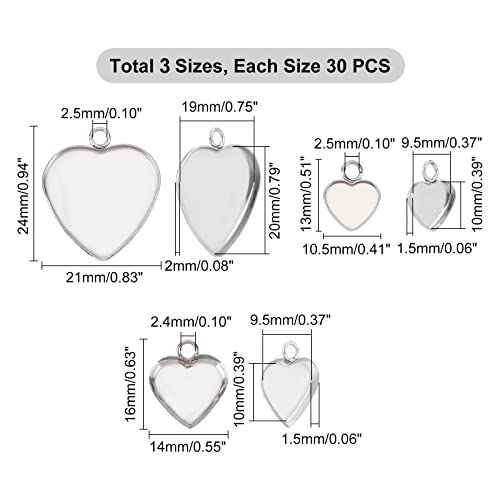 UNICRAFTALE Circa 90 pz 3 dimensioni 8-20 mm Cuore Vassoi Ciondolo In Acciaio Inox Cornice Vuota Ipoallergenico Vassoio Base Ciondolo Cabochon Impostazioni per La Creazione di Gioielli In Acciaio