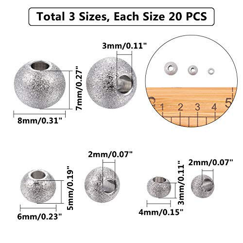 UNICRAFTALE Circa 60 pz 3 Dimensioni Perline Rotonde Strutturate Perline Allentate in Acciaio Inossidabile Perline di Metallo 2-3mm Perline Distanziali per Fori Ricerca per Creazione di Gioielli