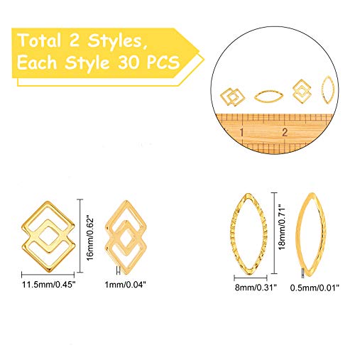 UNICRAFTALE Circa 60 pz Golden Double Rhombus E Horse Eye Links Fascini in Acciaio Inox Links Fascino in Metallo Filigrana Falegnami Collegamenti per Collana Creazione di Gioielli