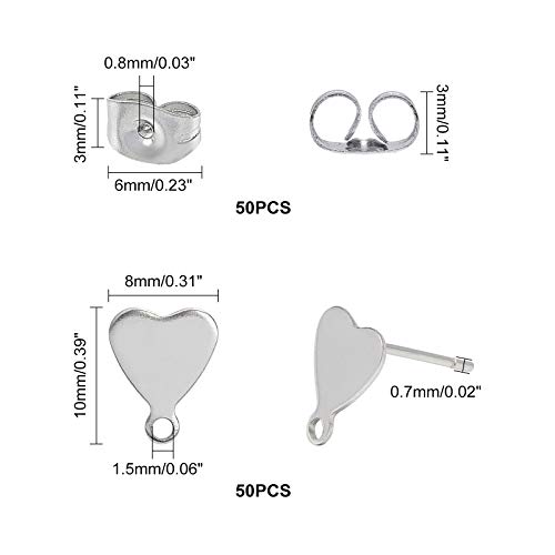 UNICRAFTALE Circa 50 pz 0.7mm Ipoallergenico Orecchino A Bottone Orecchio Dado Orecchino in Acciaio Inossidabile con Anello Cuore Risultati Dell'Orecchino Dell'Orecchio della Vite Prigioniera