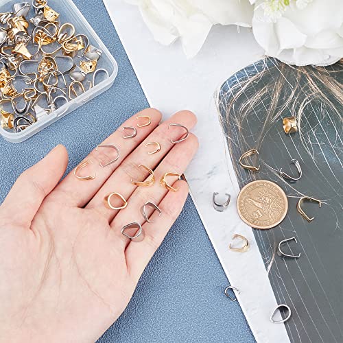 5 Dimensioni: cauzione a scatto: circa 7~11.5 mm di lunghezza, 6~11 mm di larghezza, 4~7.5 mm di spessore, 2 colori / taglia, oro & colore acciaio inossidabile, 10 pz / colore. Contiene 100 pinch bails in acciaio inossidabile nella scatola di plastica, conveniente per l'uso quotidiano e il negozio.