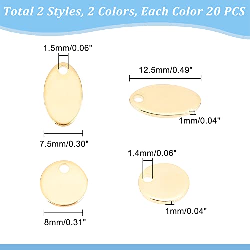 UNICRAFTALE 80 Pz 2 Colori Ciondoli Ovali Vuoti Ipoallergenico Piatto Rotondo Stamping Etichetta Vuota Ciondoli In Metallo 304 Ciondoli Vuoti Piatti In Acciaio Inossidabile per Creazione di Gioielli