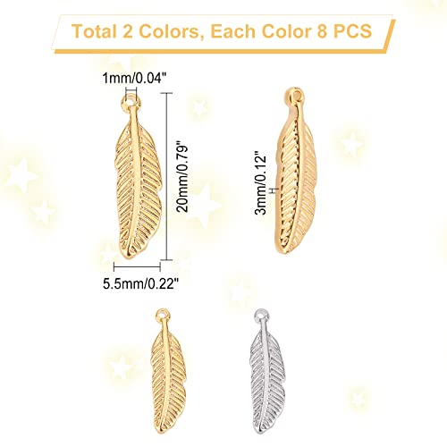UNICRAFTALE 16 pz 2 Colori Ciondoli Piuma 304 Ciondoli In Acciaio Inossidabile Pendenti con Piume di Metallo Ipoallergenico per Ciondolo Collana Creazione di Gioielli