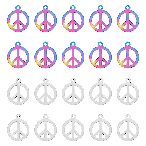UNICRAFTALE 40 Pz 2 Colori Ciondoli Segno di Pace 201 Ciondoli Pace In Acciaio Inossidabile Collana Ciondolo Pace In Metallo Orecchino Simbolo Pace Ciondoli per Collana Creazione di Gioielli Hole 1mm