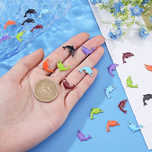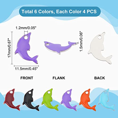 UNICRAFTALE 24 pz 6 Colori Delfino Modello Pendenti e Ciondoli In Acciaio Inox Smalto Pendenti di Colore Misto Animale Dei Monili Pendenti e Ciondoli per Monili Che Fanno, Hole 1.2 mm