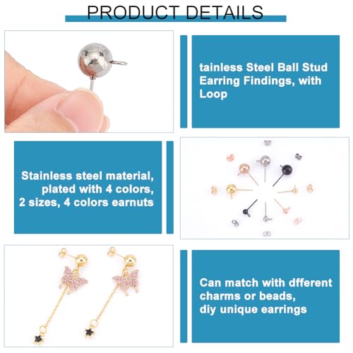 UNICRAFTALE 16 pz 4 Colori 4/8 mm Orecchini A Perno in Acciaio Inossidabile con Orecchino Ad Anello Trovare con Dadi per Orecchio per Orecchini Fai da Te Creazione di Gioielli