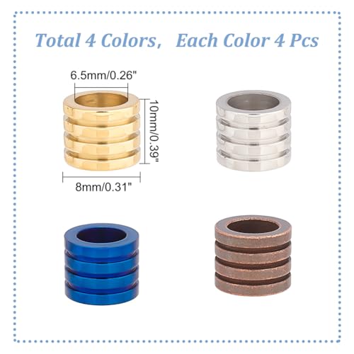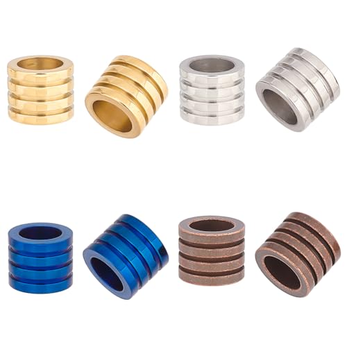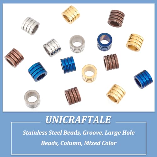 UNICRAFTALE 16 pz 4 Colori Perline Colonna Scanalata 10/11mm Perline Colonna in Acciaio Inox 6.5mm Foro Largo Perline Allentate in Metallo Distanziatori per Creazione di Gioielli Senza Foglie