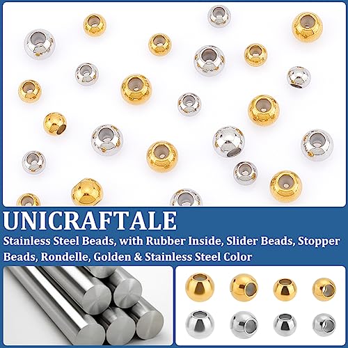 UNICRAFTALE 24 pz 2 Colori Perline Cursori in Acciaio Inossidabile 1.2-2mm Foro Rotondo Tappo in Gomma Perlina Posizionamento in Metallo Perline Distanziali Lisce Perline di Posizionamento