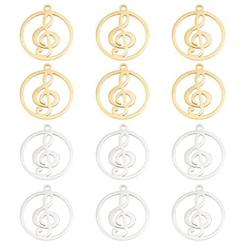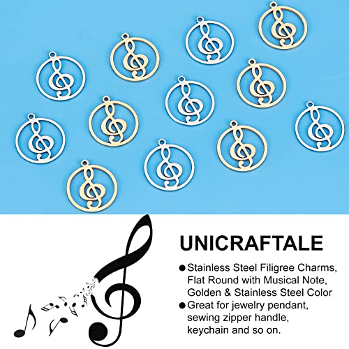 UNICRAFTALE 12 pz 2 Colori Piatto Rotondo con Nota Musicale In Filigrana Pendenti e Ciondoli 201 Pendenti In Acciaio Inossidabile Pendenti e Ciondoli Liscio per La Creazione di Gioielli