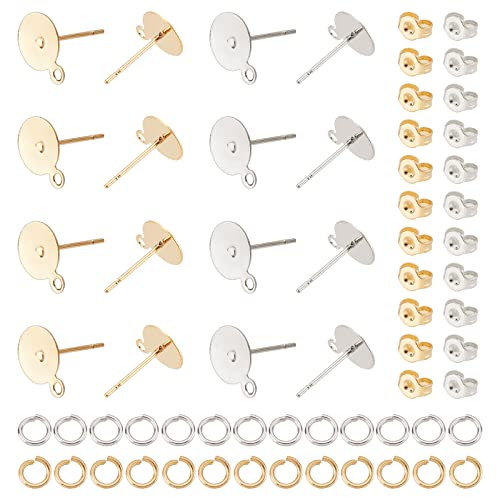 UNICRAFTALE 60 Set 2 Colori Piatto Rotondo Orecchini A Bottone Impostazioni 304 Perni per Orecchino in Acciaio Inossidabile Piatto Rotondo Vuoto Peg Post Ear Studs Risultati con Anelli di Salto